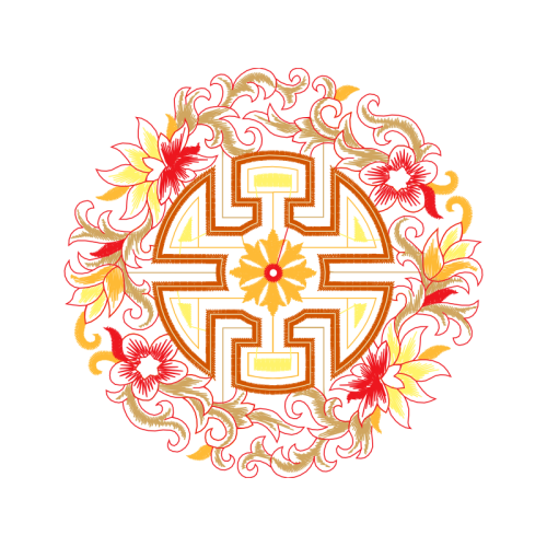 A beautiful circle image. This other artwork features red, art, orange.