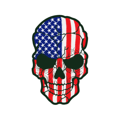 A beautiful illustration image. This patches and badges artwork features red, bone, skull.